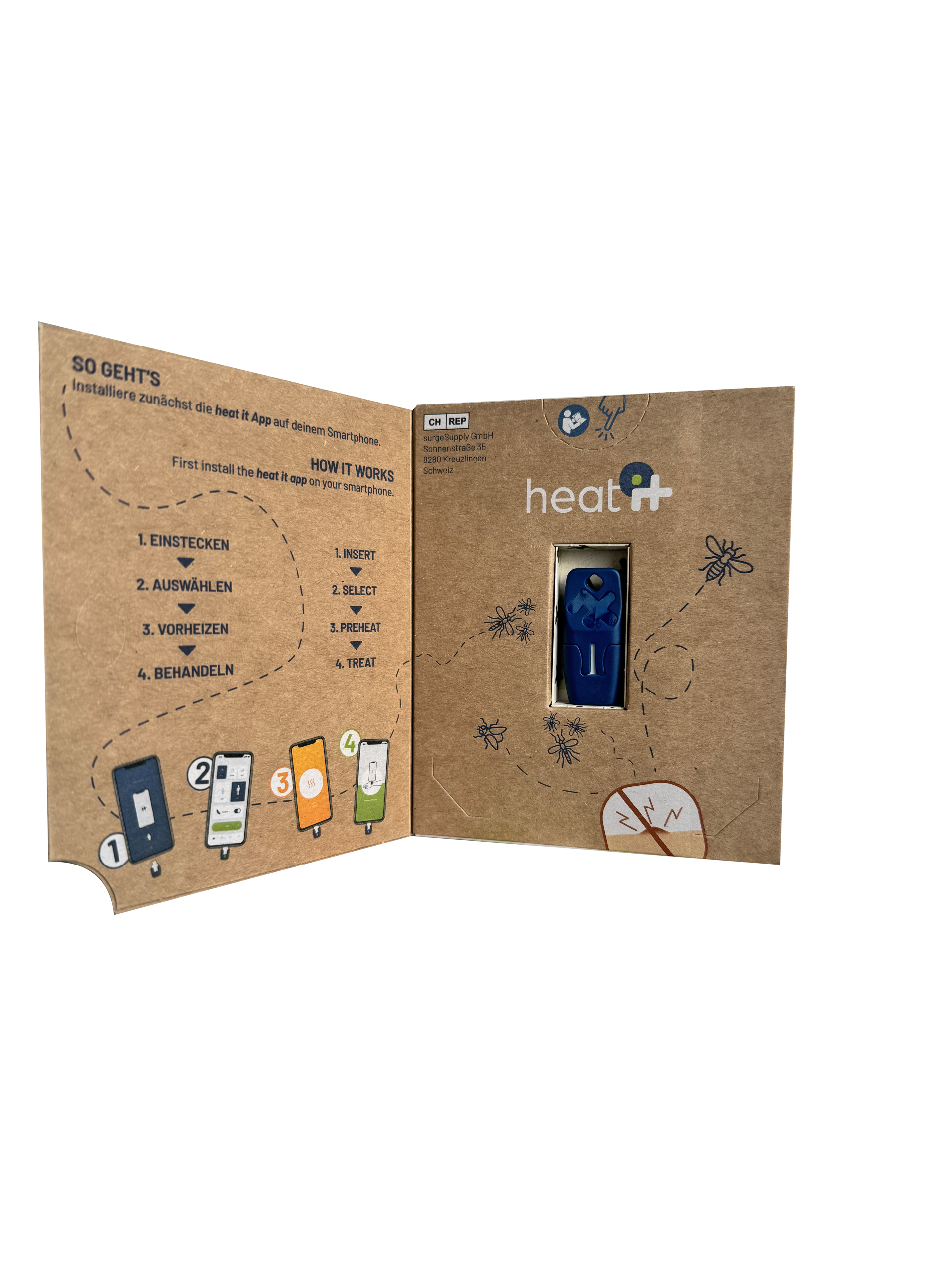 Grâce à une chaleur ciblée médicalement, Heat it® soulage rapidement les piqûres de moustiques, guêpes, abeilles, taons et autres insectes… sans produit chimique.