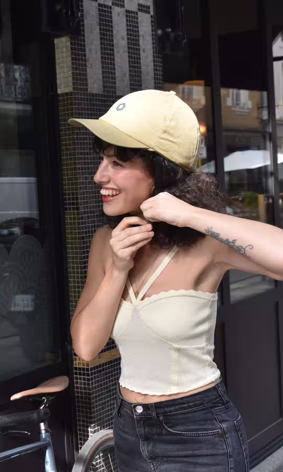 « Enfin un casque qui ne gâche pas ma coiffure ! J’ai pris la casquette rose et le bonnet noir : je change selon mon humeur. Et surtout, je me sens en sécurité. »